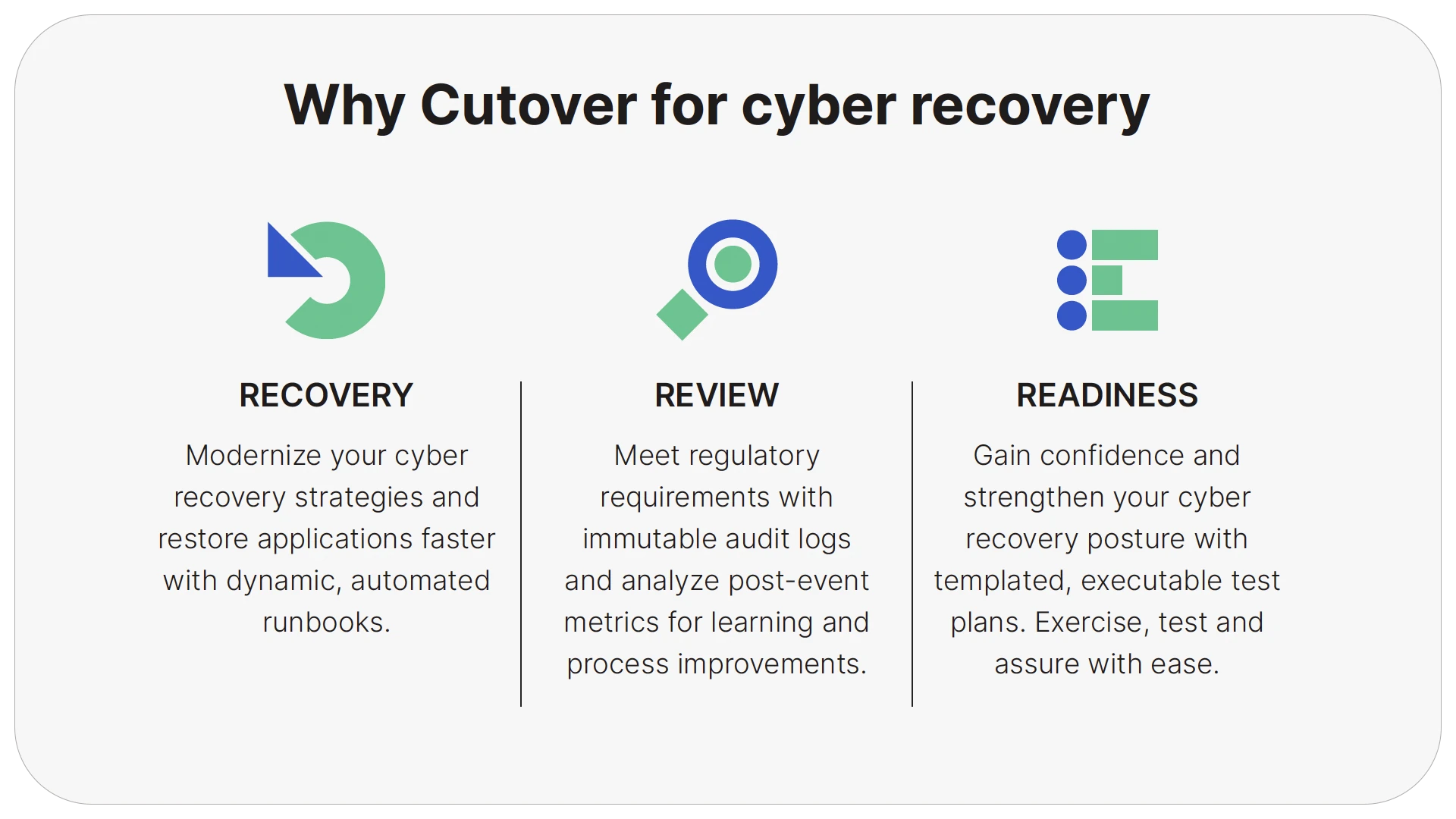 Cutover takes the risk and cost out of your cyber recovery operations by enabling better collaboration between teams and automation. Watch this video to learn more.