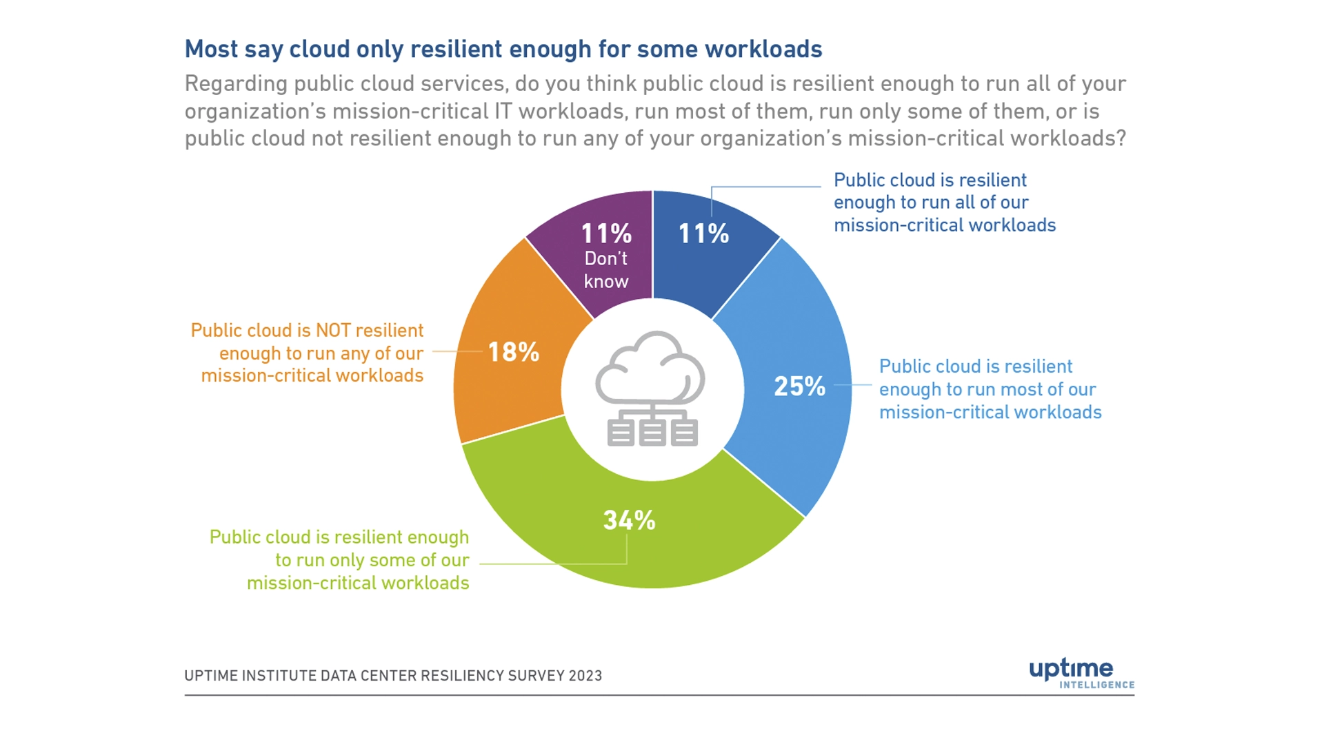 Migrating to the cloud doesn’t provide out-of-the-box resiliency. The recent Uptime Institute Data Center Resiliency Survey states that most companies say cloud is only resilient enough for some workloads.